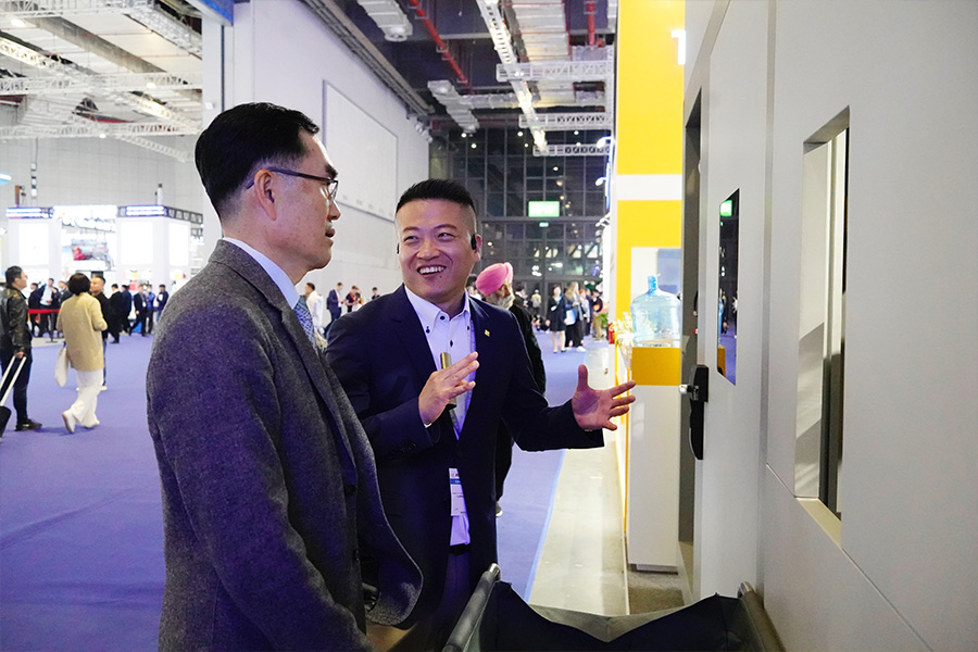 現(xiàn)場(chǎng),采用國(guó)際前沿技術(shù)自主研發(fā)而成的第六代全自動(dòng)旋轉(zhuǎn)式吹瓶機(jī)成為最濃墨重彩的標(biāo)識(shí),其所具備的自動(dòng)化、智能化程度高,產(chǎn)品質(zhì)量?jī)?yōu)良穩(wěn)定,生產(chǎn)效率高、低能耗等特點(diǎn)彰顯了無(wú)與倫比的生產(chǎn)效率,引得客戶們紛紛駐足達(dá)意隆展位,與我們的工作人員展開(kāi)熱烈交流,共同探討合作的可能性。